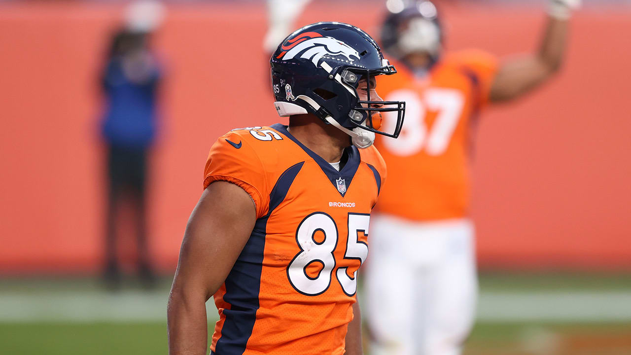One week later, his season came to a screeching halt as he tore his ACL in the third quarter of a Week 9 game against the Falcons. The fourth-round pick finished his rookie season with 11 total catches for 121 yards and a touchdown as he battled for snaps behind Noah Fant and Nick Vannett.